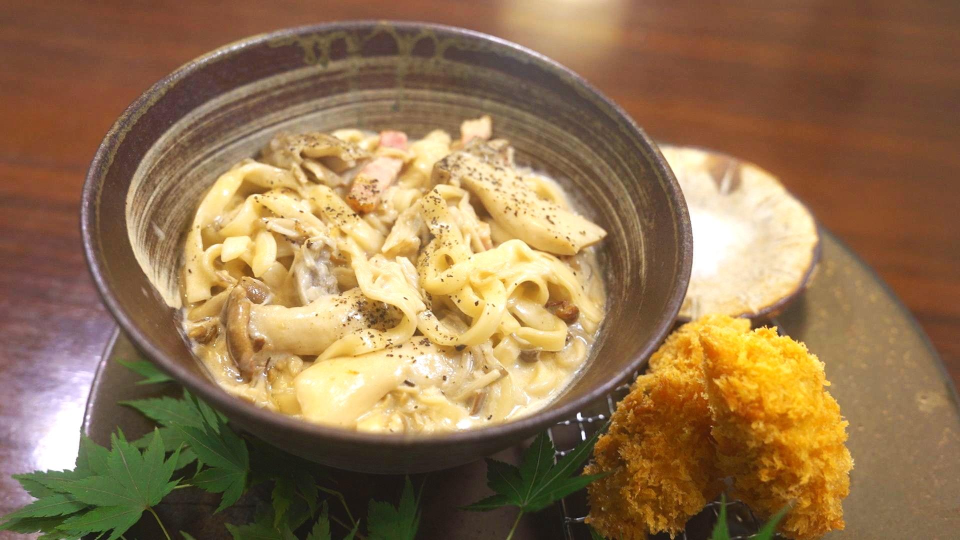 料金 キノコの和出汁クリームうどん~牡蠣フライ~ 1990円