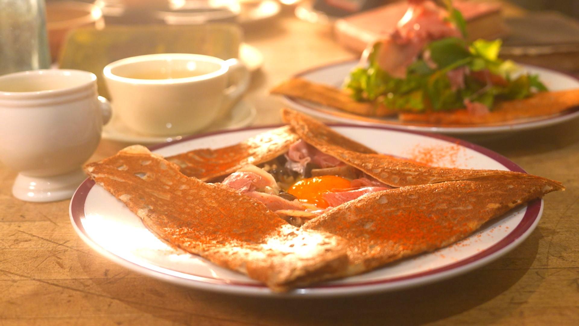 生ハムときのこソテー・白トリュフ風味のガレット 1700円(+300円でドリンク付き)
