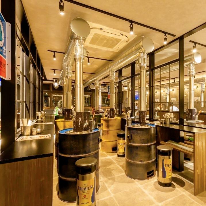 雰囲気は韓国さながら。韓国っぽいネオンに店内はドラム缶を使ったテーブル席、ソファー席とあります。小人数でも貸切りでも対応ができます。