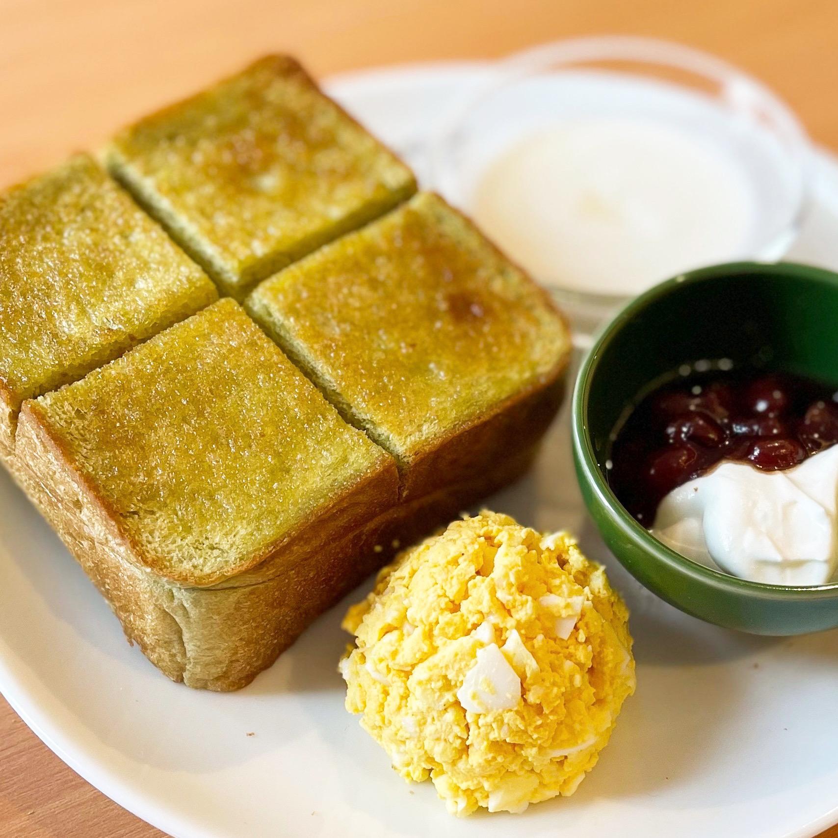 モーニングは定番もありますが、珍しいのは“西尾抹茶パン”のトーストです。ほんのり抹茶の香りがするのが特徴です。