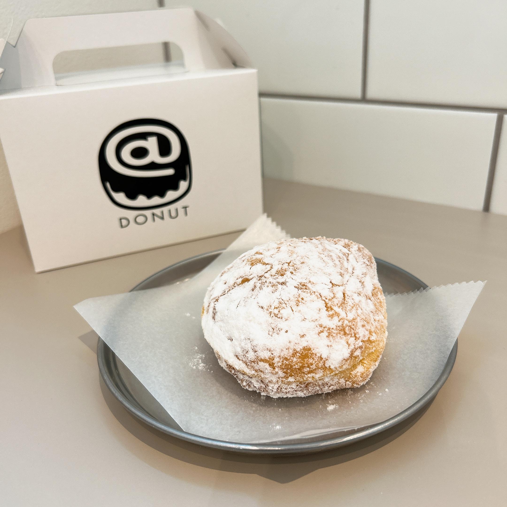 表面に粉糖をまぶしたシンプルなドーナツで、優しい甘さが口いっぱいに広がります。
