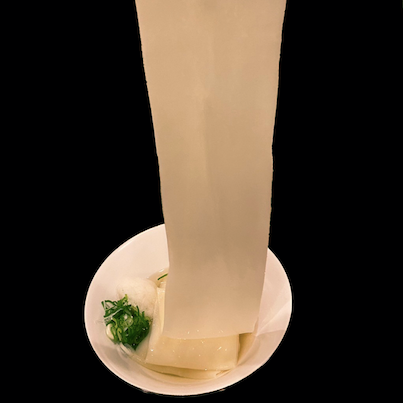 インパクトある数量限定の【特大平麺】は驚く幅広サイズの麺で、自家製麺だからこそできるメニューです。
