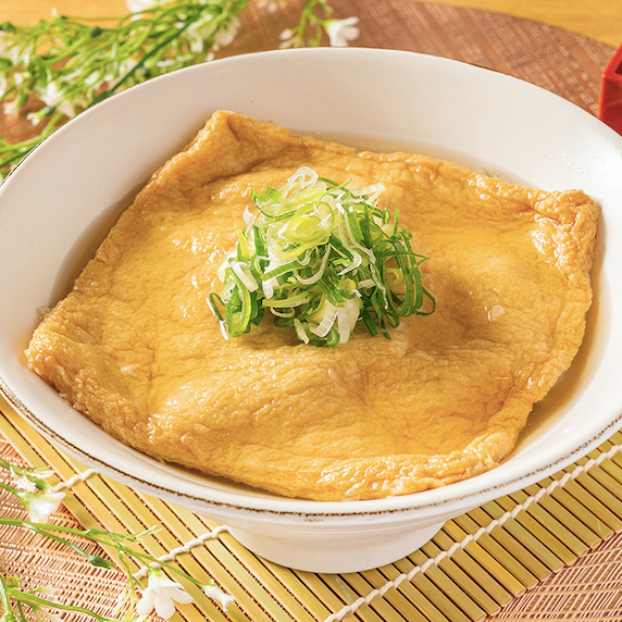 メニューの一番人気は、香川県から直送される“揚げ”が一枚そのまま入った【きつねうどん】です。器いっぱいの特大の揚げは、店で油抜きをし、少し甘めの味付けにしています。食べ応えも十分です。