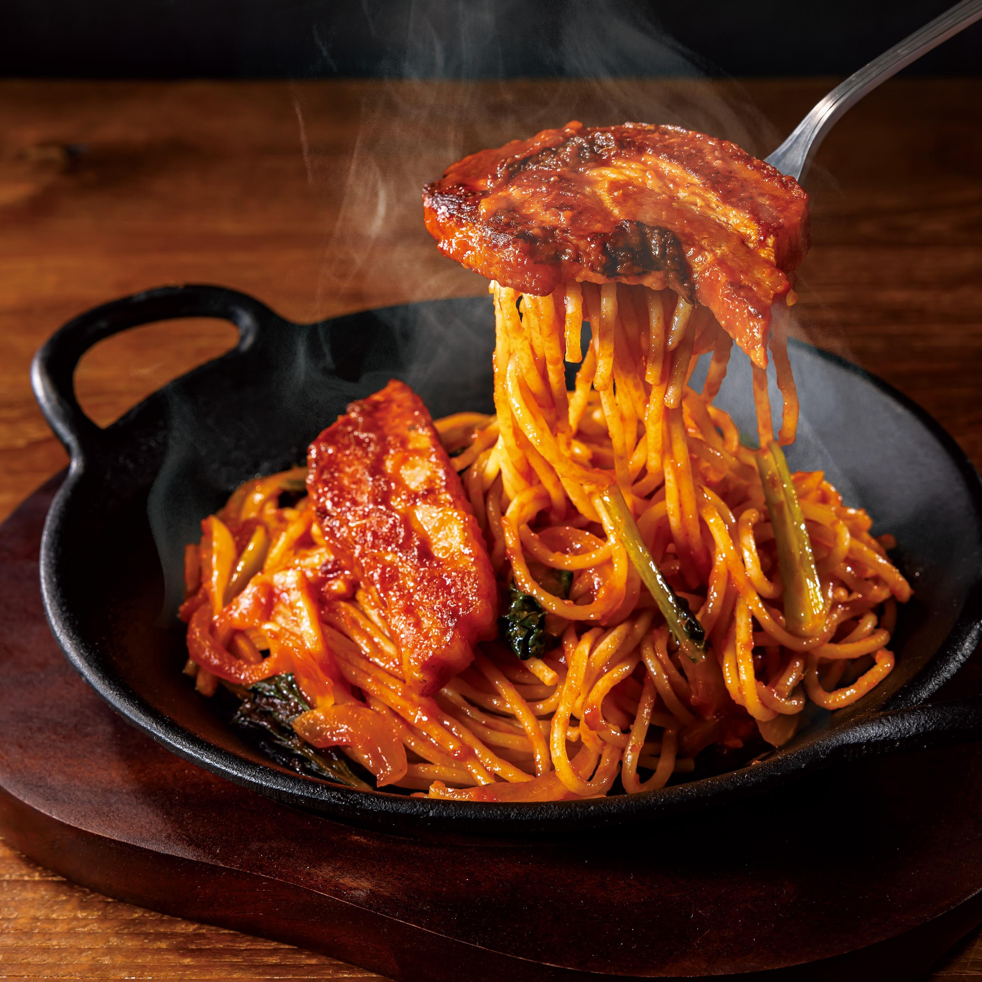 店の名前の通り、スパゲッティをアツアツで食べて頂きたいという想いから、スパゲッティは全て鉄板で提供しています。そのため最後まで“モチモチ感”“アツアツ感”を楽しめます。