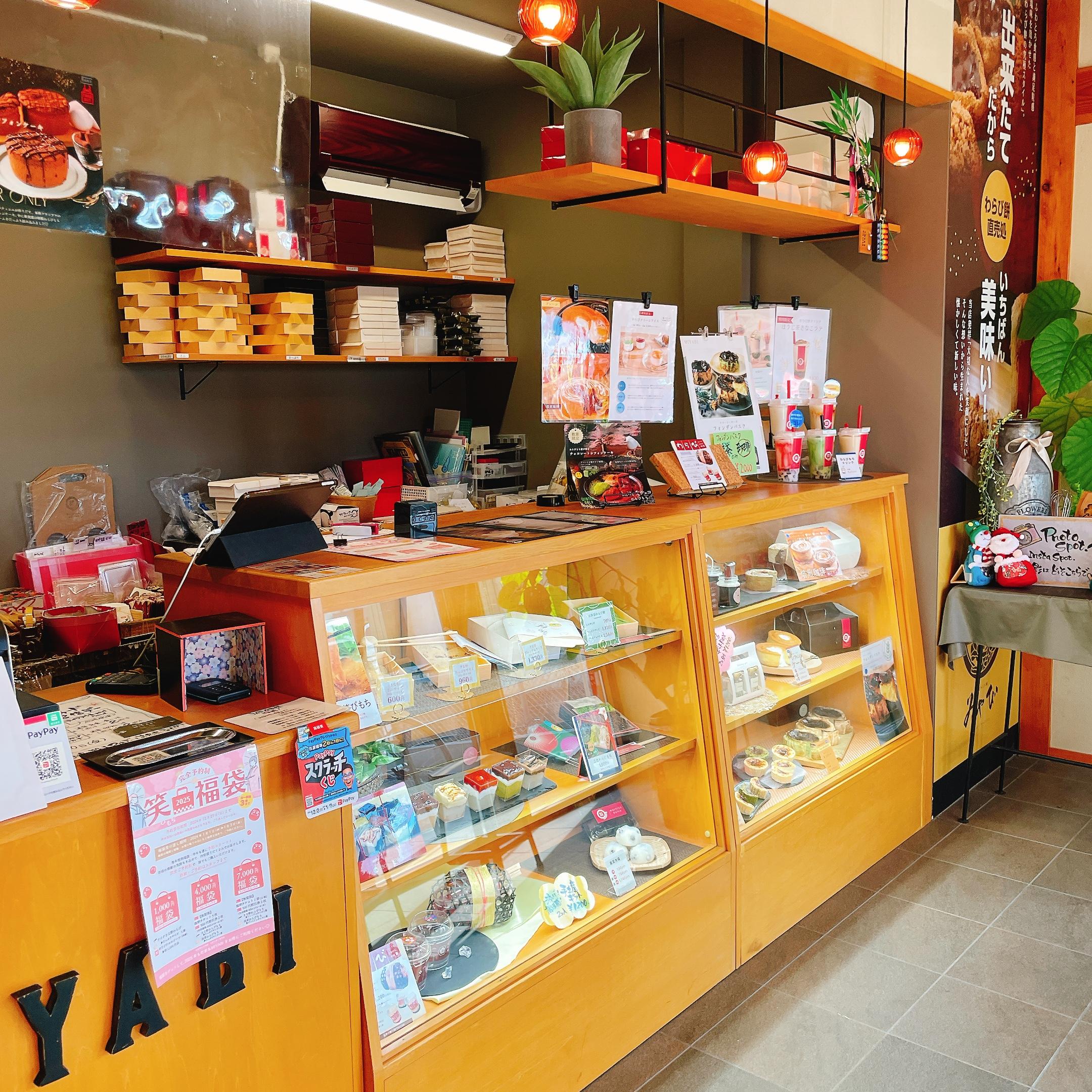 隣の「町家かふぇ」で大好評の“わらび餅”の他、本わらび粉を使ったオリジナルスイーツや和菓子、洋菓子も並んでいます。