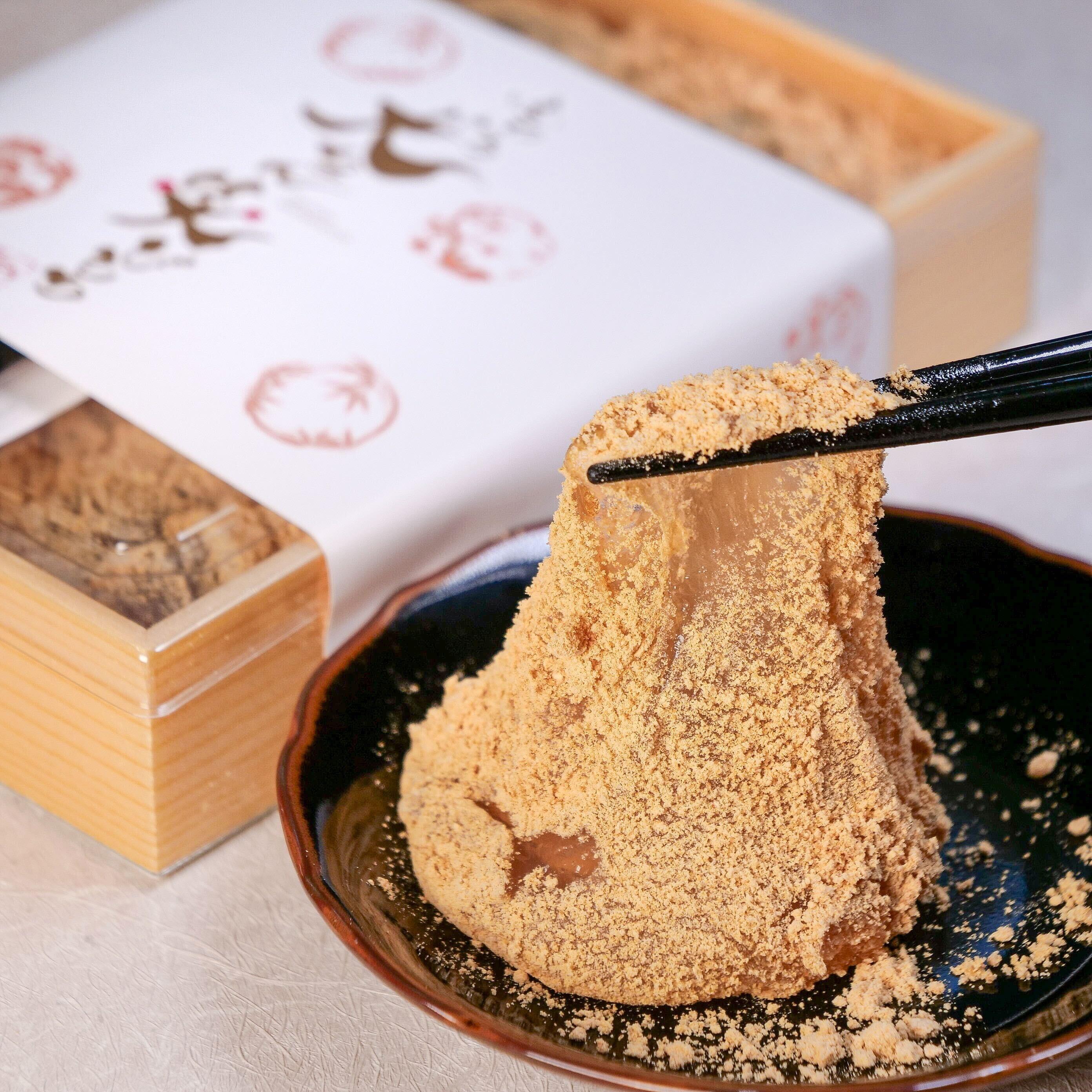 毎日自社工場で製造されるわらび餅は、本わらび粉と蓮粉を独自のレシピで配合しています。子どもから年配の方まで幅広い世代に受け入れられる、ふわとろ食感に仕上がっています。