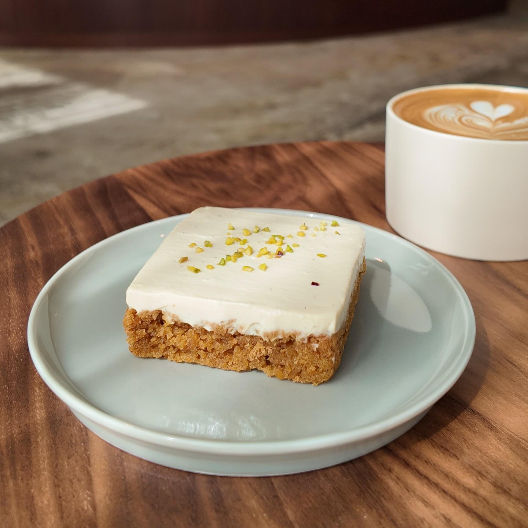 人気の【キャロットケーキ】は、しっとりとしたグルテンフリーの生地の上に、豆乳から作られた自家製のプラントベースのクリームが乗っています。ニンジンの風味とスパイスの香りがふわっと口の中で広がります。