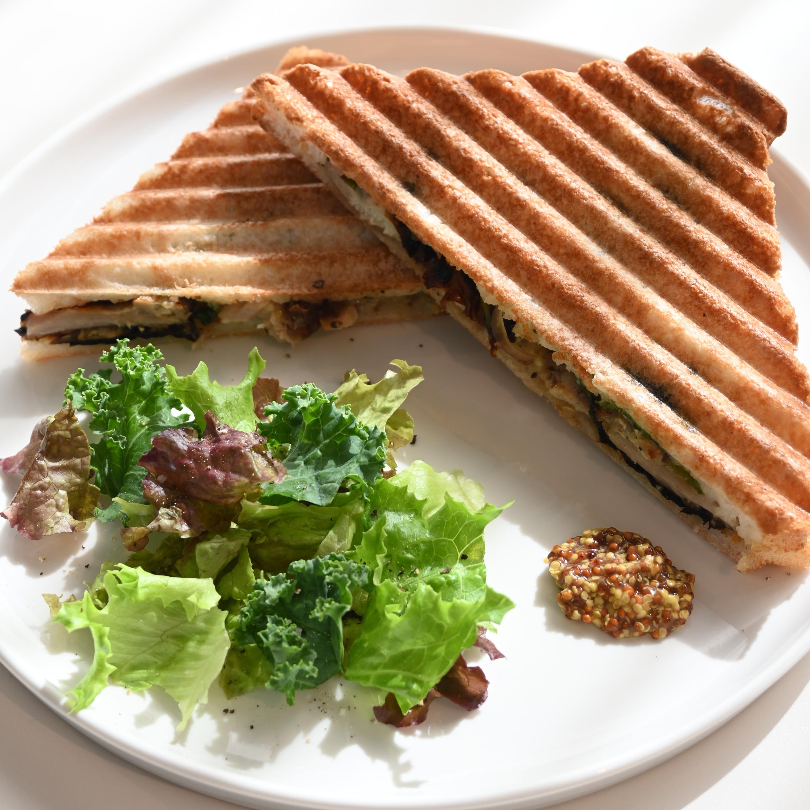 米粉食パンを使った“パニーニ”は、表面はサクッと中はモチモチとした食感です。