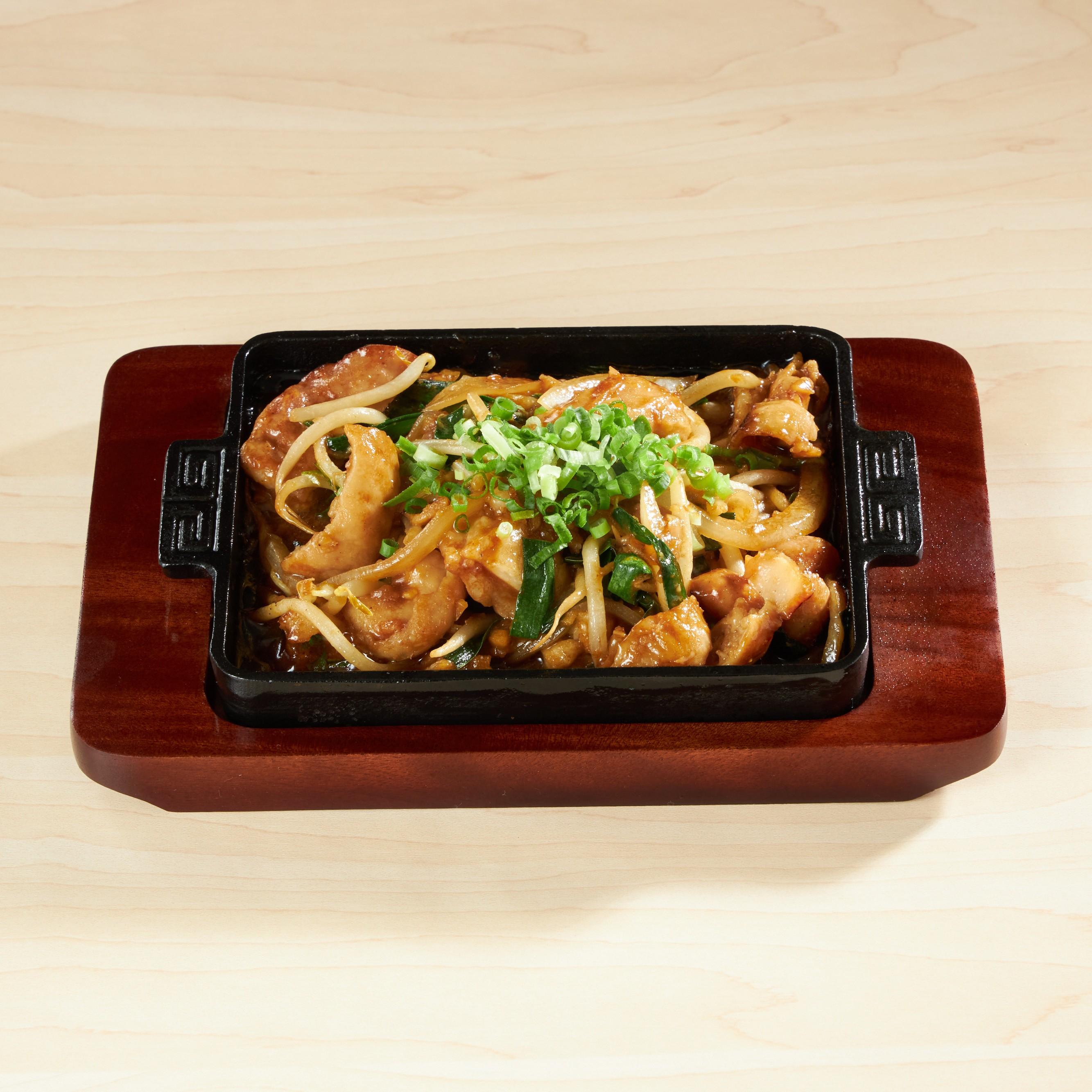 【味噌とんちゃん】は名古屋のご当地グルメの“とんちゃん”を鉄板焼きにアレンジした、熱々の一品です。