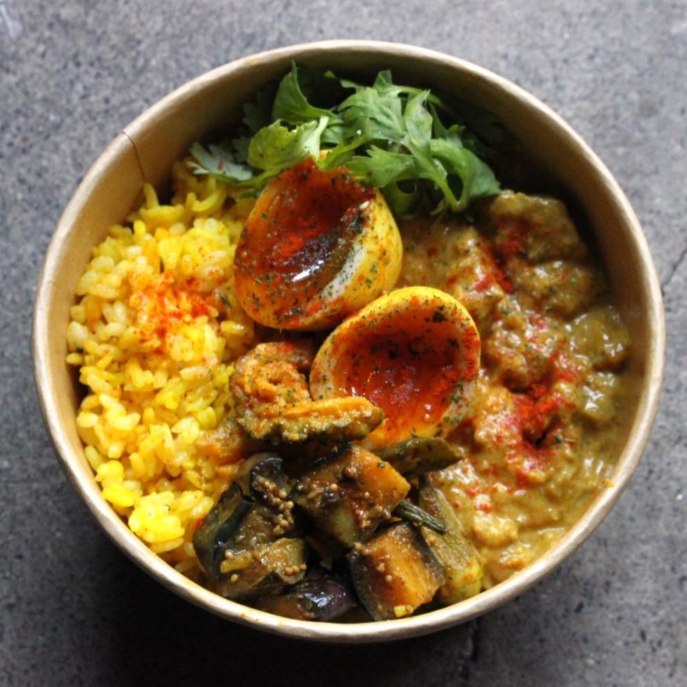 栄の住吉エリアにある「ビストロμ」で昼間のみ営業する、スパイスカレー店です。2025年10月にオープンしました。