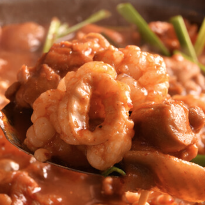【ナッコプセ鍋】は手長タコにホルモン、エビに野菜が入ったピリ辛鍋で、寒い時期には特に人気です。シメには海鮮と肉と野菜の旨味がたっぷり出た汁で作る“ポックンパ(焼き飯)”がおすすめです。