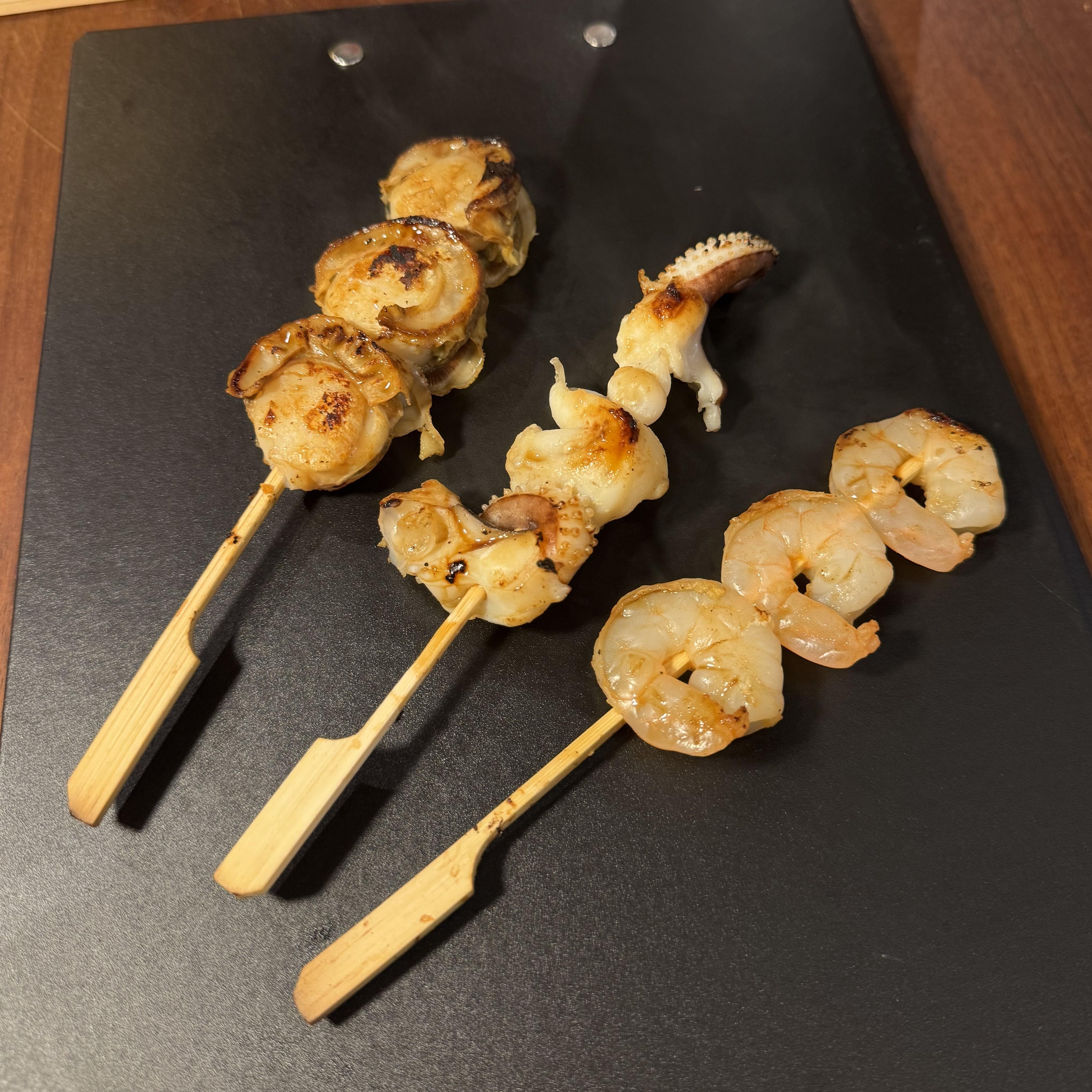 他にも食べ歩きにもぴったりな、「たこせん」、ホタテ、ゲソ、エビを串焼きし、特製のソースをつけた「海鮮串」もあります。