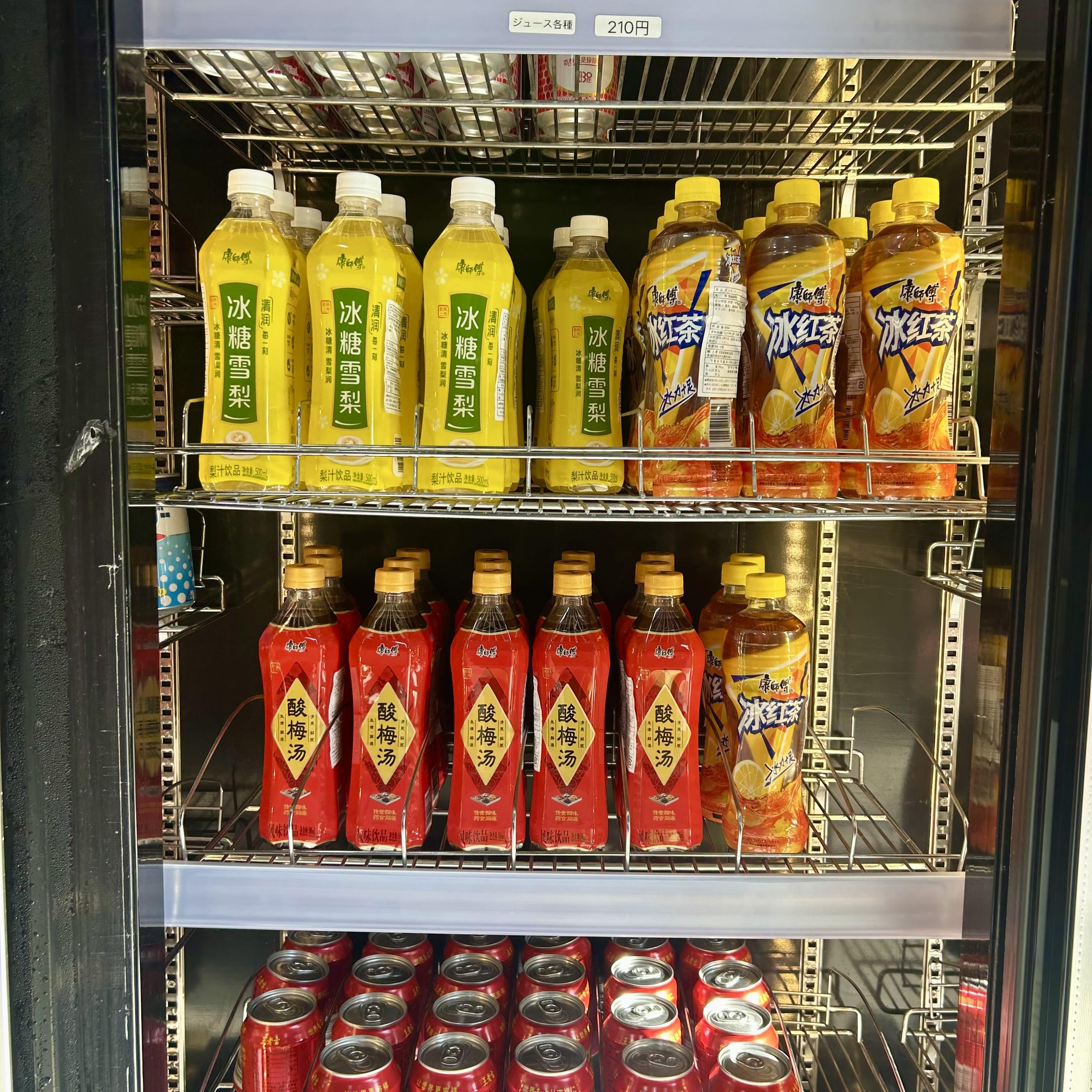 店内の冷蔵庫では中国のドリンクも販売されています。ライチソーダやレモンティー、甘味のあるお茶など、日本ではお目にかかることが少ない珍しいドリンクが揃っています。