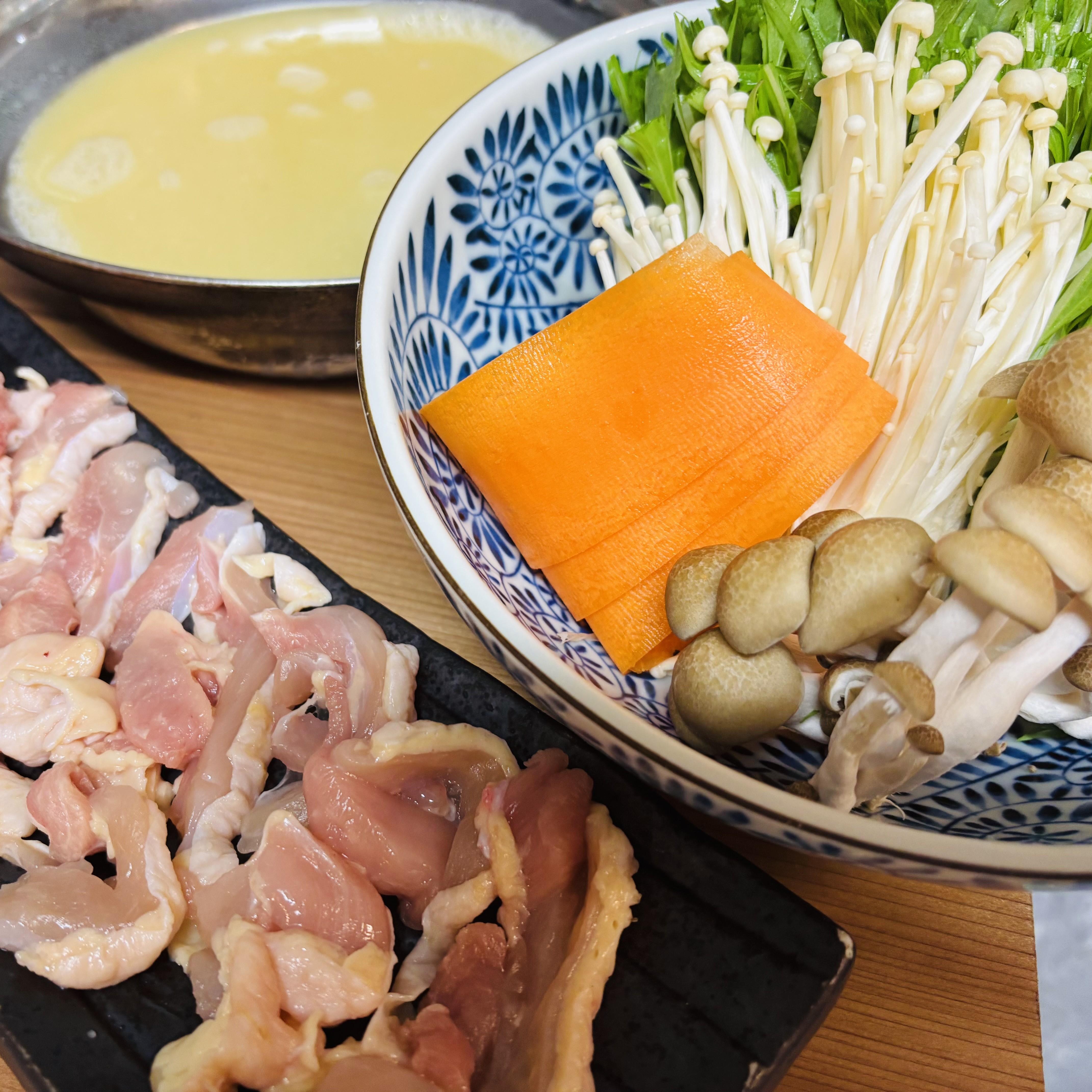 季節を問わず人気の「鍋」は、鶏ガラと野菜を使い、ゆっくりと丸一日以上かけて作る白湯スープです。あっさりとした深みのある味で、鶏肉・豚肉いずれの相性も抜群です。そのため、お肉は選べるようになっています。オススメの追加は自家製のつくねです。
