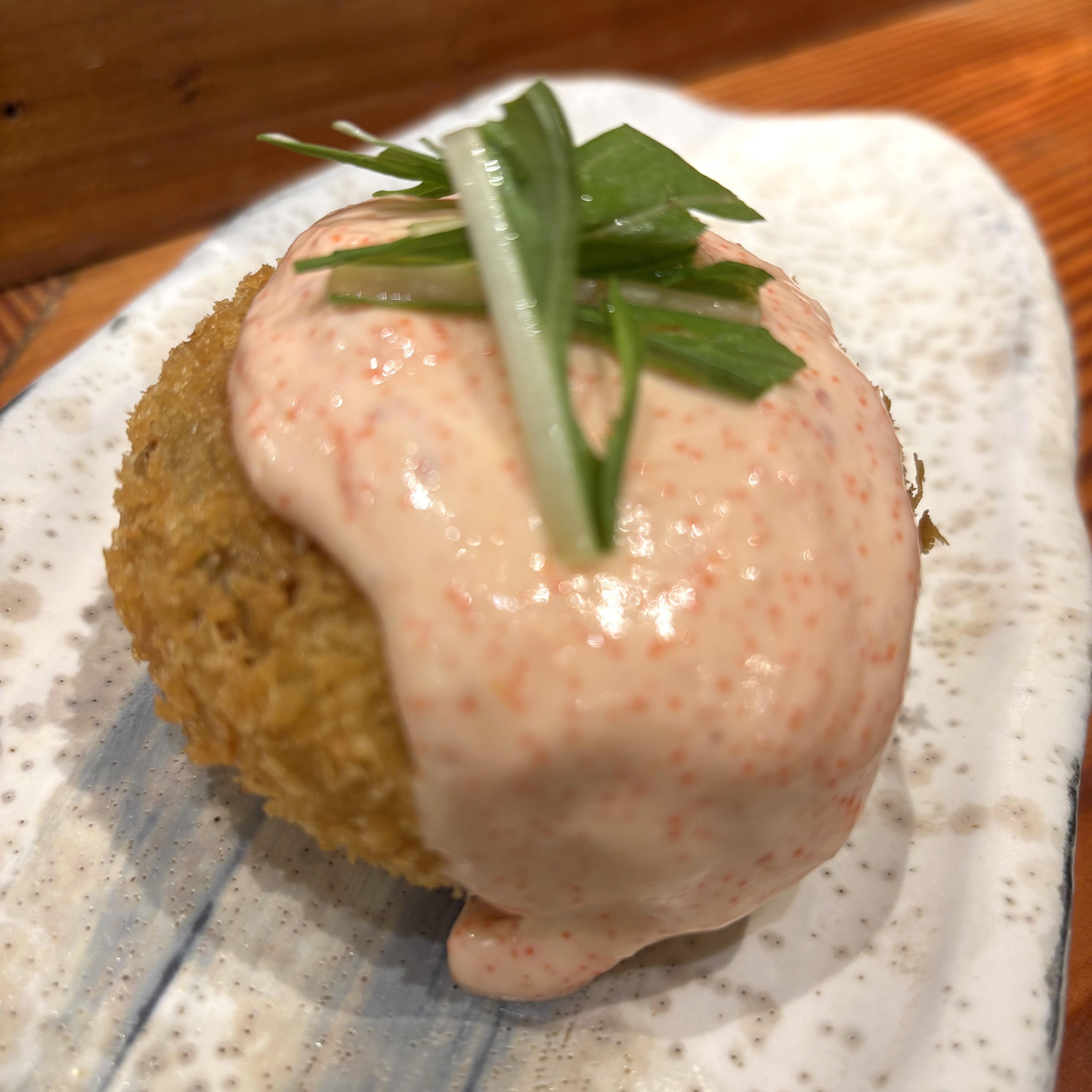 【鶏皮山椒】【玉ねぎ明太フライ】(各600円)