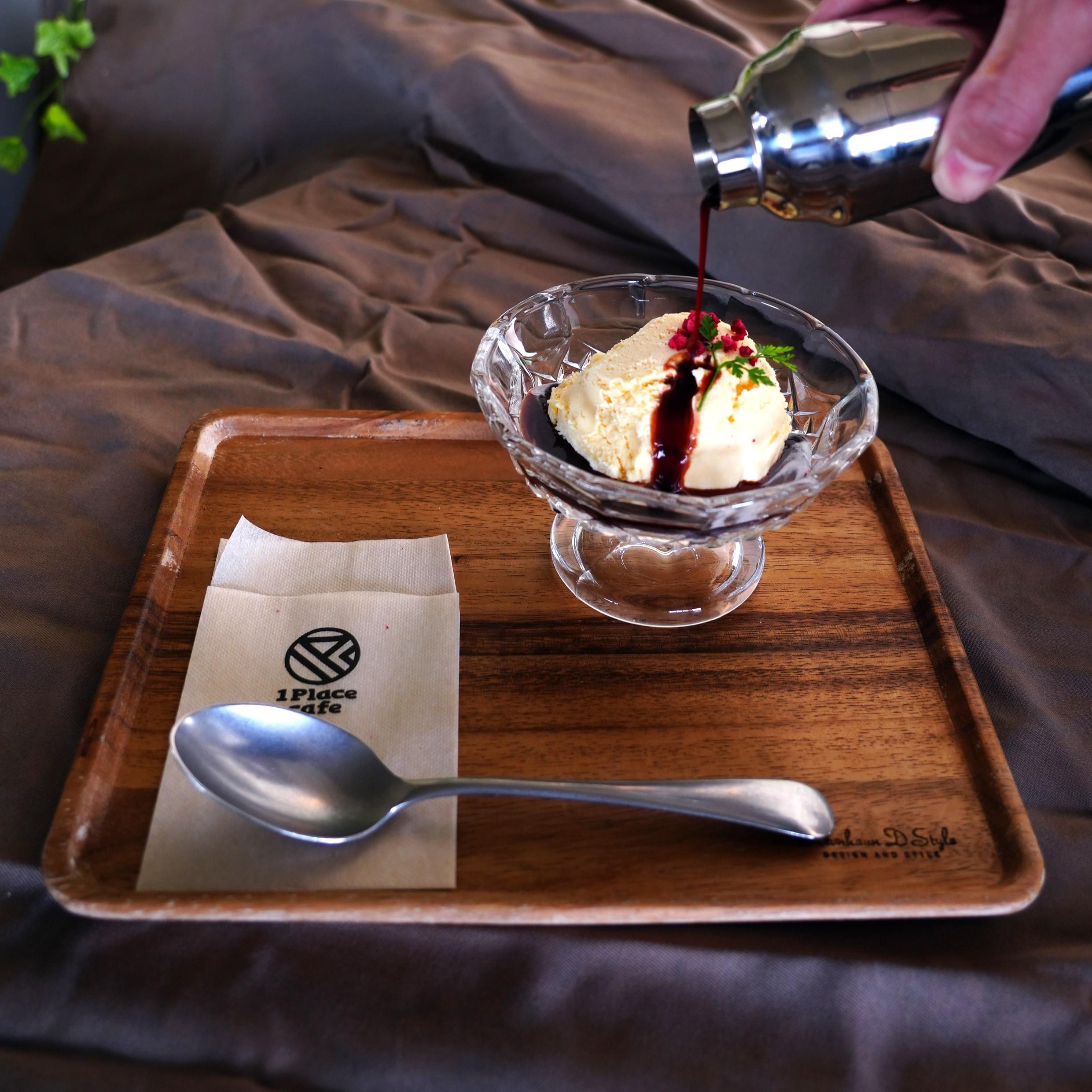 【大人のベリーアフォガード】は、挽きたてのエスプレッソとベリーソースが入ったシェイカーが提供されます。自身でシェイクしてアイスクリームにかけて仕上げる体験型のアフォガードで、急冷されることで香りが広がります。バニラアイスクリームの濃厚さとほろ苦さが絶妙なデザートです。