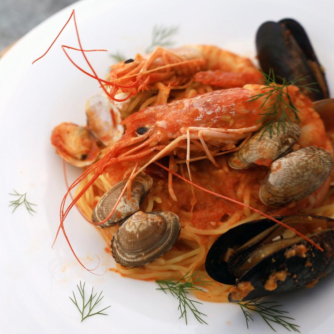 【ムール貝と浅利と海老のペスカトーレ】(1672円)