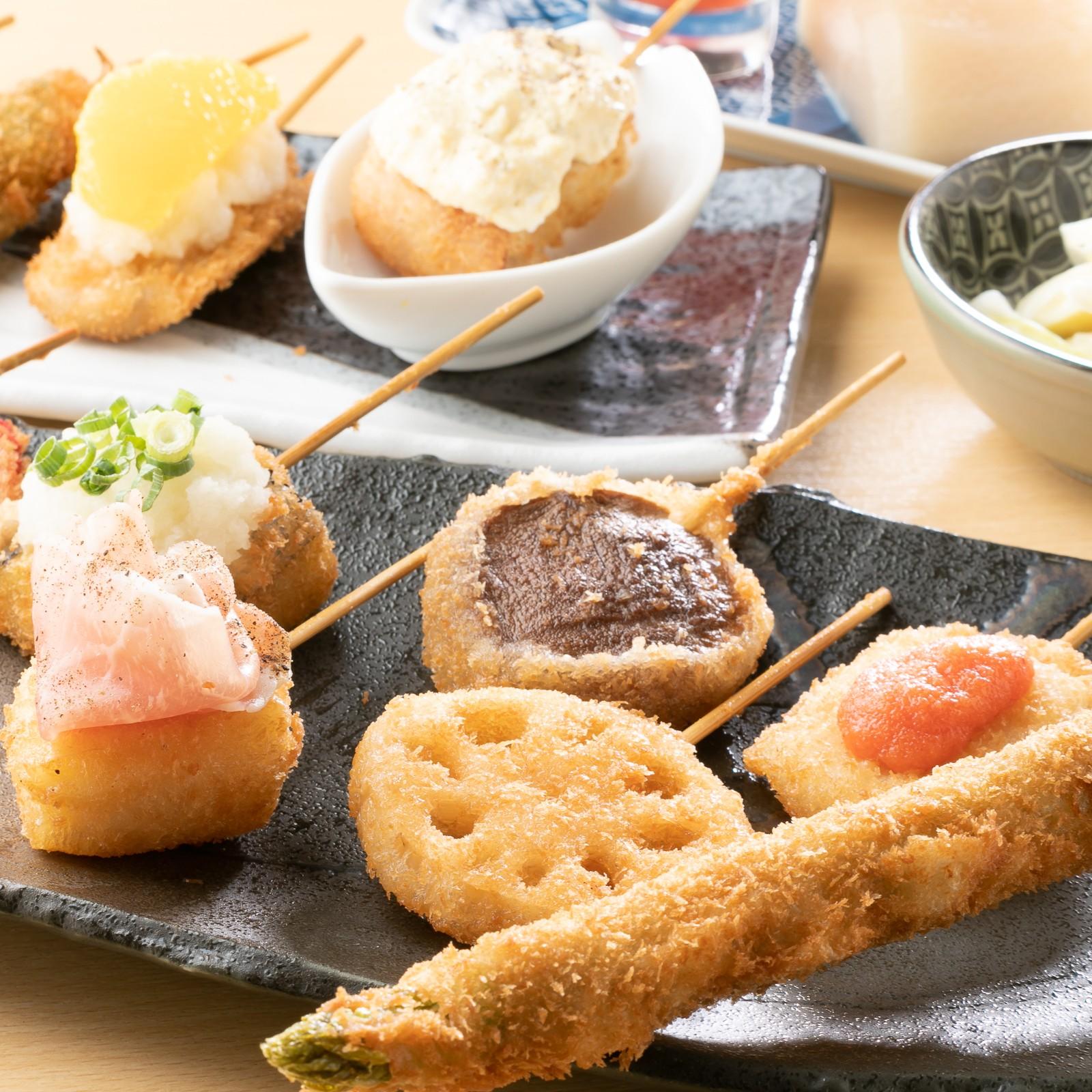 串揚げは、定番の串カツと“いか明太”などの創作串が30種類以上あります。