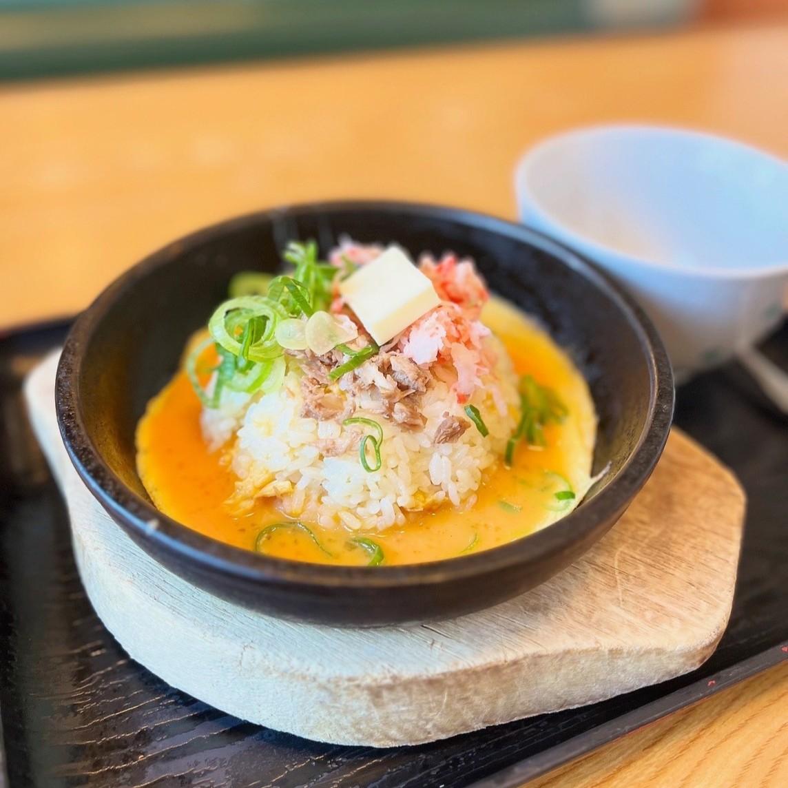 最後に自分で混ぜて仕上げるチャーハンで、お好みで卓上の甘辛の特製醤油をかけて、バター醤油にすることもできます。バターのコクと香ばしさがアクセントになった一品です。