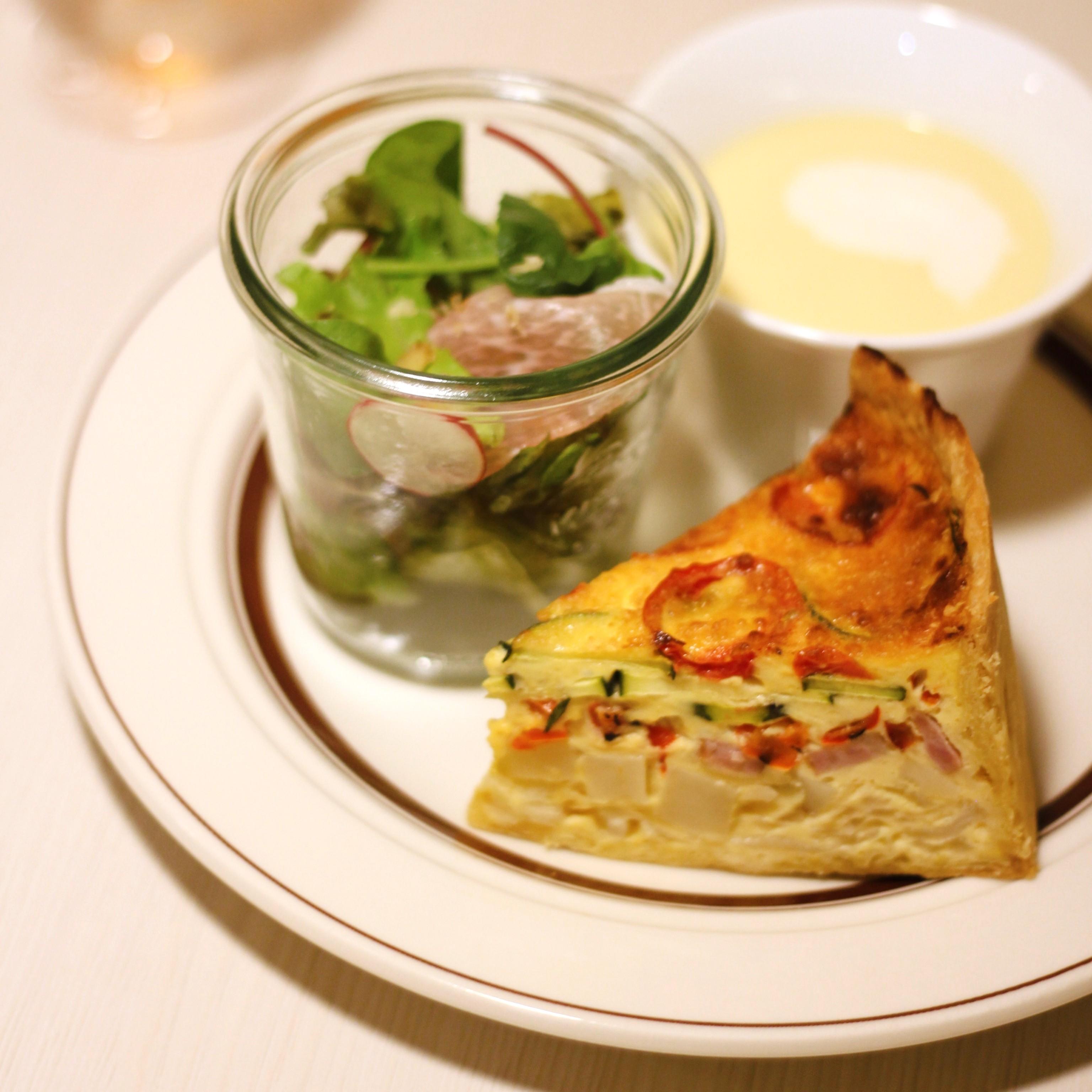 また、オープンから14時までの時間は、オープンサンドの【週替わり自家製フォカッチャサンド】や具材たっぷり食べ応え抜群な【月替わりキッシュ】などのランチも楽しむことができます。