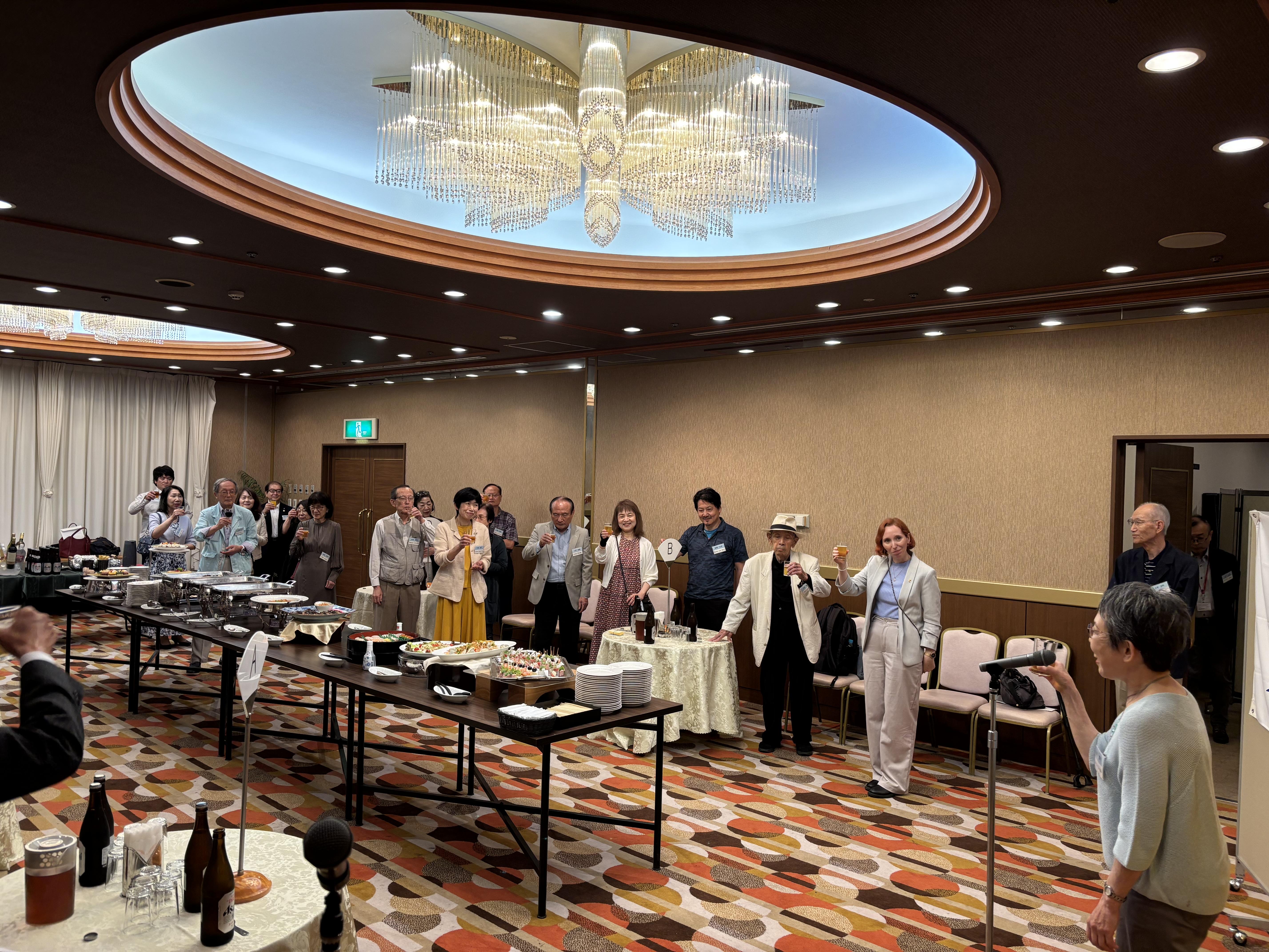 また、横浜スペイン協会の下山会長や神戸日西協会の尾辺理事らのご出席もあり、会場には在住スペイン人や会員の約80名の方々にお集まりいただいて、パーティーは盛大に行われました。